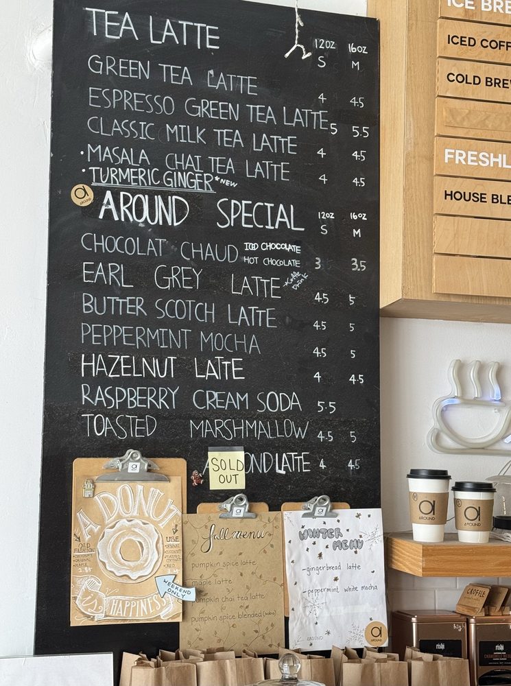 “ We like trying new coffee shops. Since we were going to be in Elk Grove Village, we decided to check out Around Cafe afterwards. It's located in quaint downtown Arlington Heights. It has a corner location, but there was a decent amount of street parking available on the Saturday that we went. The interior is tiny. There are a few small tables and one large table. They had a good selection of coffee and tea, and I believe they also had boba. They had some sweet treats, too, like donuts and cookies. Service was friendly, and pricing was very fair. We ordered a cappuccino and a caramel macchiato. The cappuccino had excellent foamed milk. The coffee base didn't seem like a true espresso, though. It was a large serving, so I feel it was more like an Americano with foamed milk. Still, it was decent. My wife thought the caramel macchiato was "standard". Not bad, but nothing special. ”